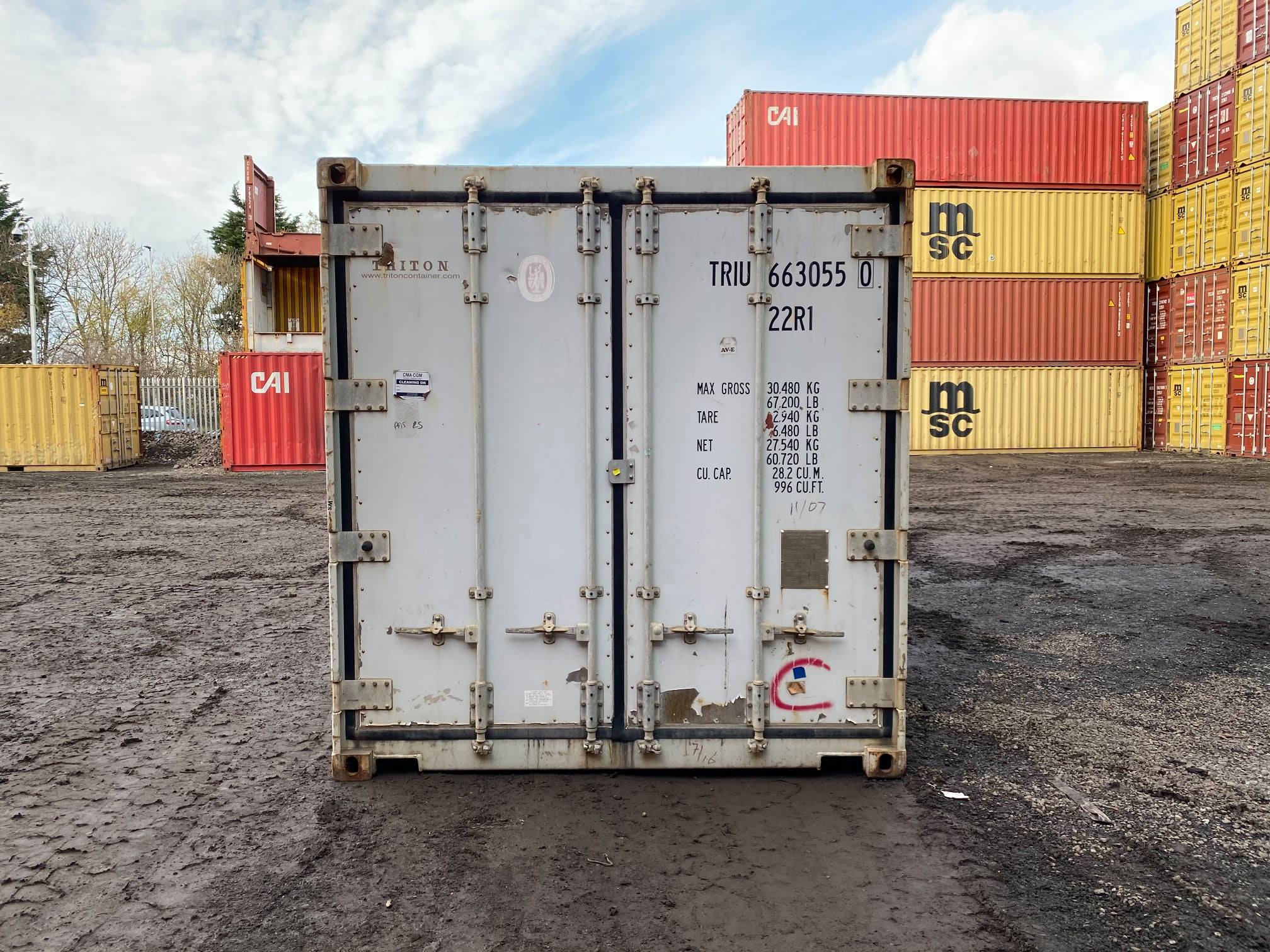 This 20ft used refrigerated shipping container features a factory-installed Carrier refrigeration unit. The container has been previously employed in cold chain transport and maintains controlled interior temperatures. Suitable for temperature-sensitive storage or transport applications.